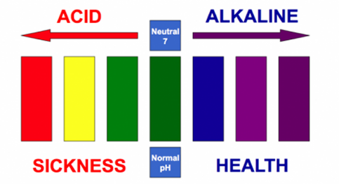 The acid-alkaline balance relates to the chemistry of the body’s fluids and tissues as measured by pH. The cells of the body must have a slightly alkaline environment to survive. With a blood pH of 7.365 the cells are in homeostasis and they receive nourishment and release waste with ease. But when we eat, drink and live an acidic lifestyle, our cells and the inner environment become toxic. Our diet and lifestyle choices will either help or harm the delicate pH balance and our overall health. Even a minor fluctuation in the blood’s pH in either direction creates distress signals in the body causing various symptoms that start out small then ramp up as the imbalance continues. Everything from a runny nose to skin eruptions, heartburn, eczema, inflammation, arthritis, poor circulation, chronic fatigue, irritable bowel syndrome, a weakened immune system to the chronic diseases of aging can be tracked back in some way to an acidic inner terrain.